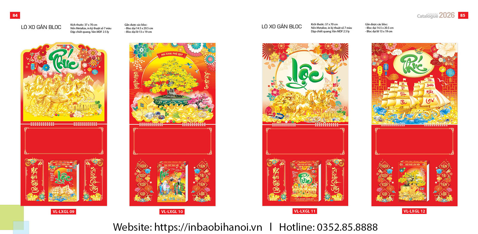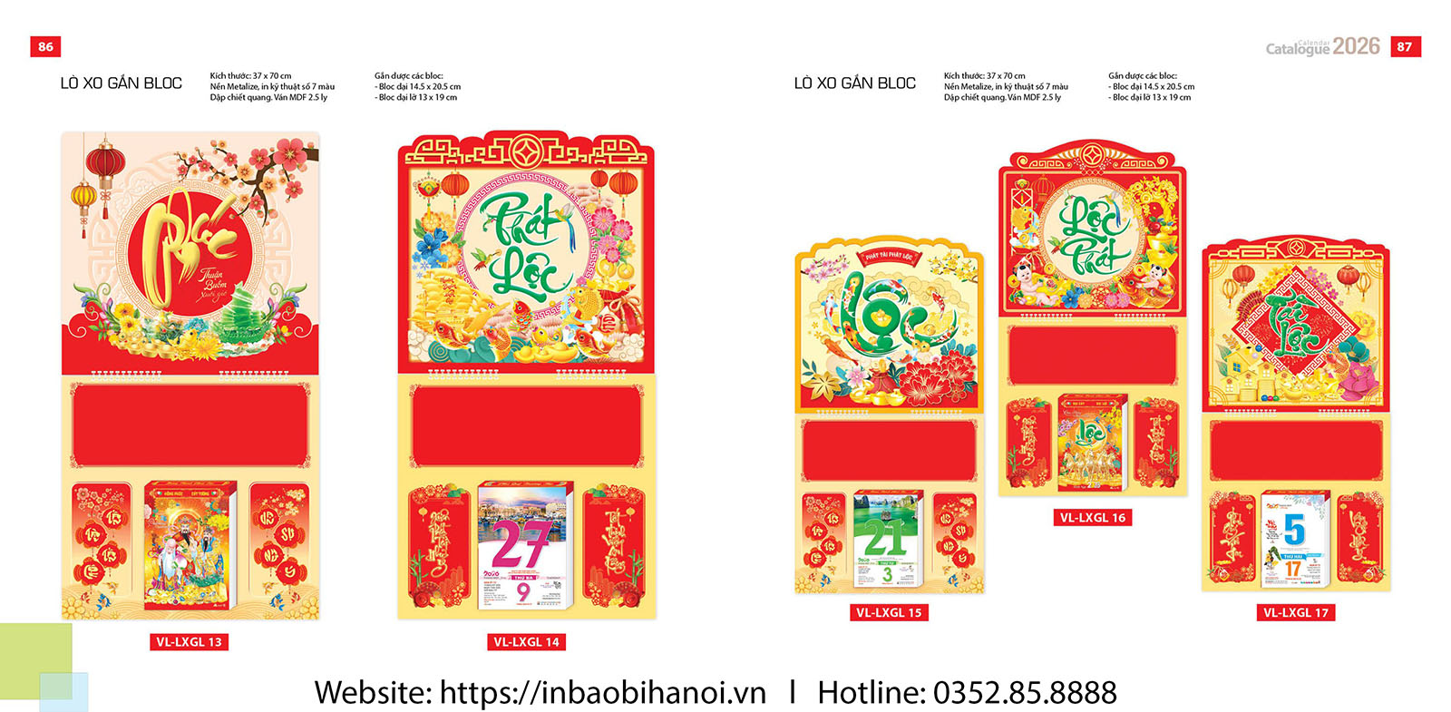 Chọn mẫu Lịch Lò Xo Giữa Gắn Bloc 2026 theo catalogue mới nhất: