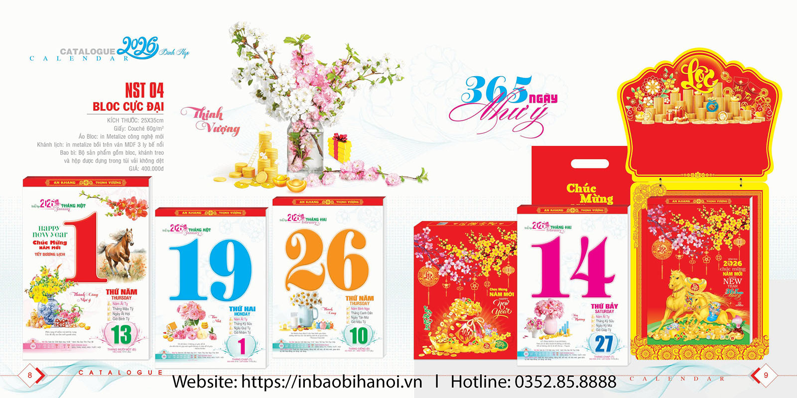 Mẫu Lịch Bloc Cực Đại 2026 tại In Bao Bì Hà Nội :