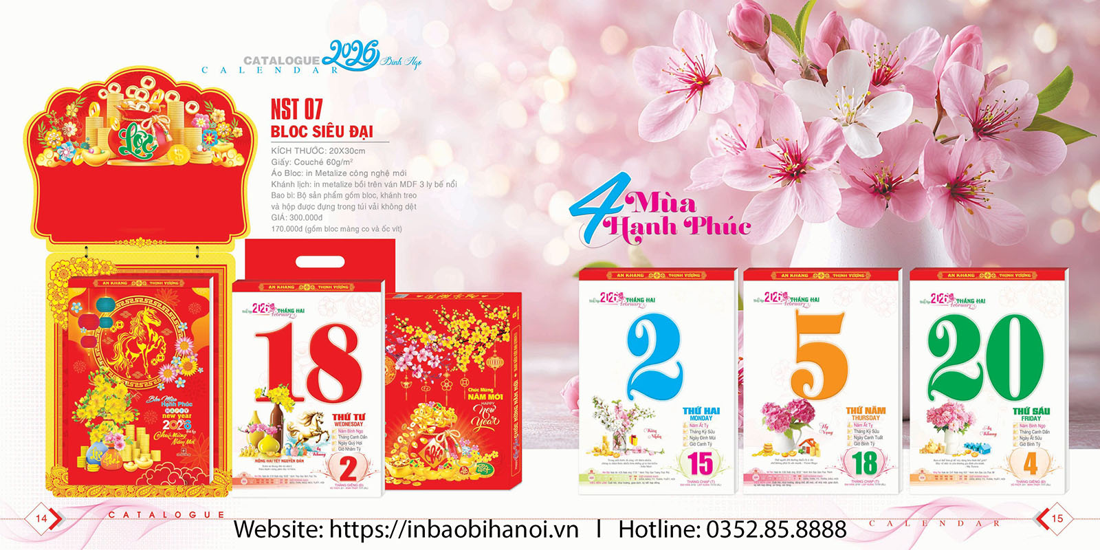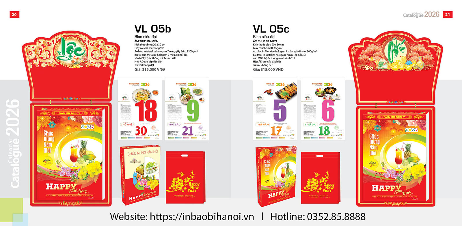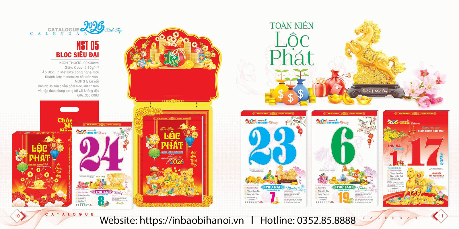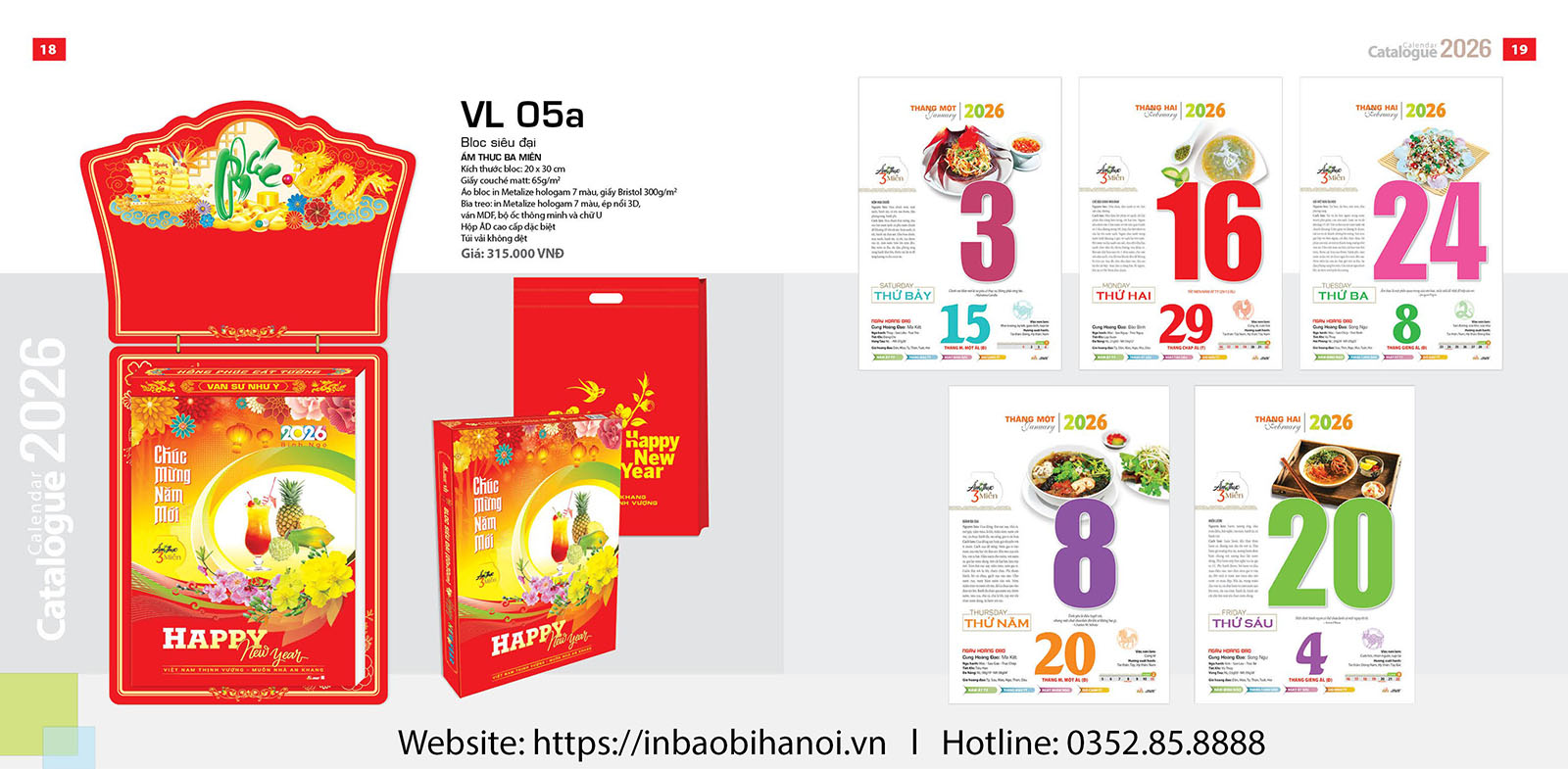 Bộ Lịch Bloc Siêu Đại 2025 gồm: – Khánh Lịch: In theo công nghệ mới metalize. Ép nổi 3D. – Kích thước bloc lịch 365 tờ: 20x30 cm – Hộp đựng lịch. – Túi đựng lịch kèm theo. Mẫu Lịch Bloc Siêu Đại 2025 tại In Bao Bì Hà Nội :