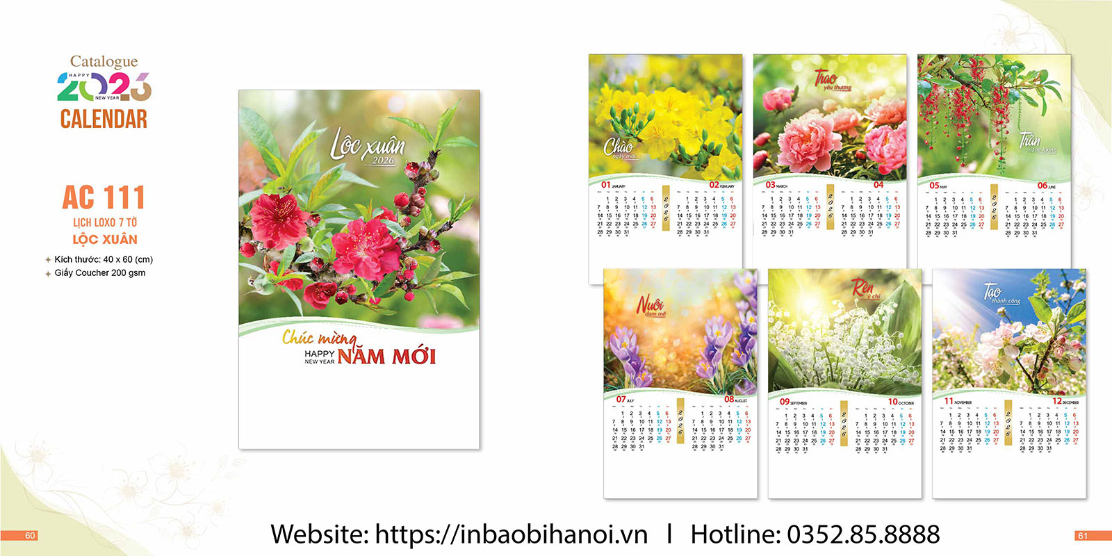 Cuối năm càng đến gần cũng là lúc thị trường in lịch tết trở nên sôi động. Công ty In Bao Bì Hà Nội ra mắt mẫu lịch lò xo 7 tờ đón xuân Bính Ngọ 2026.